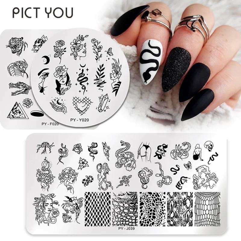 Пластины для стемпинга ногтей PICT YOU Snake, пластины с узором под змеиную кожу, трафарет для дизайна ногтей, шаблон для стемпинга, инструменты