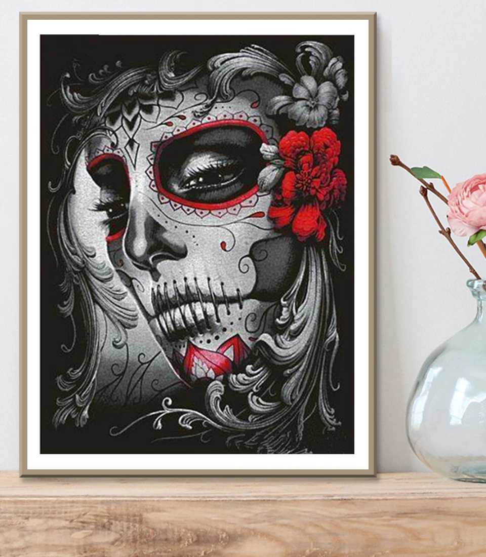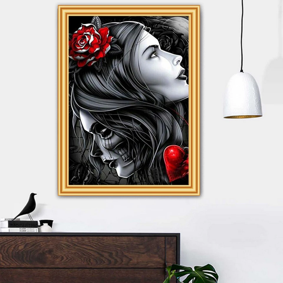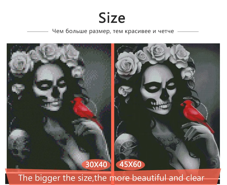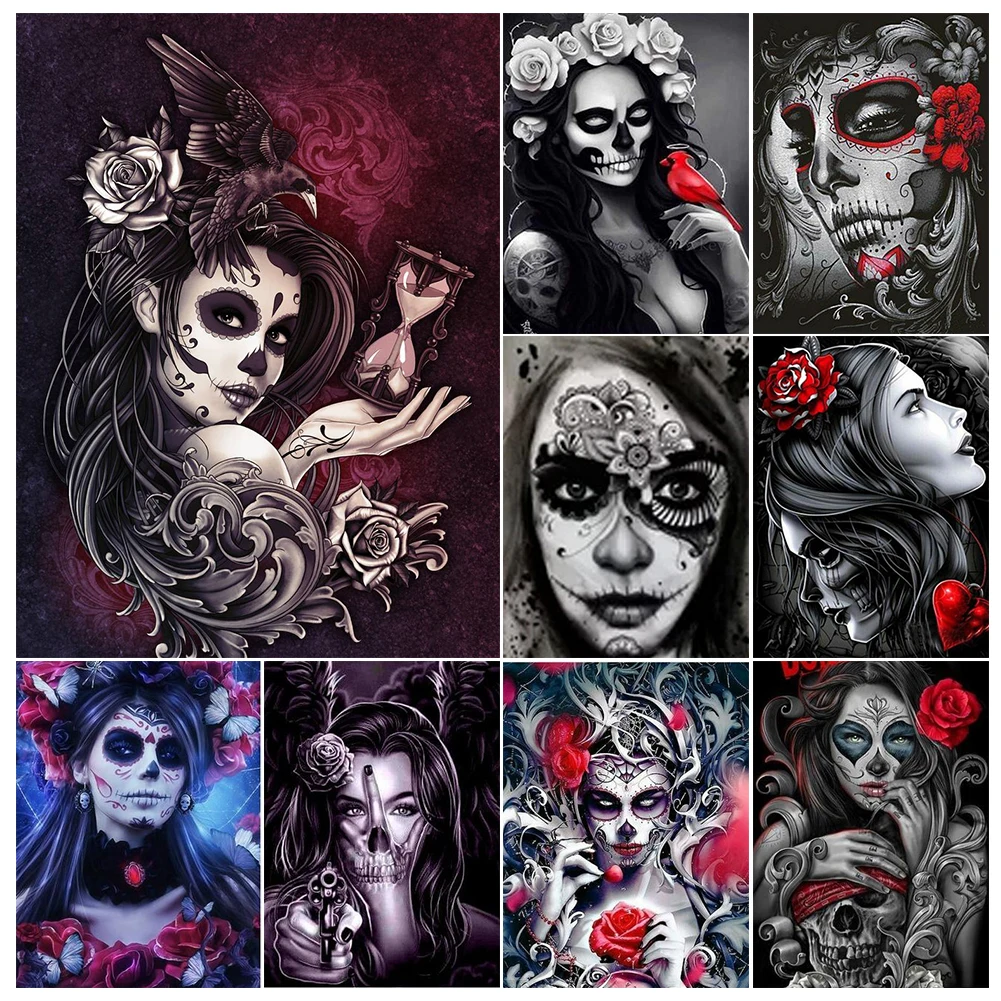 Алмазная картина 5D "сделай сам", Череп, девушка, вышивка крестиком, вышивка квадратными стразами, подарок на Хэллоуин, мозаика, картина для украшения Стразы