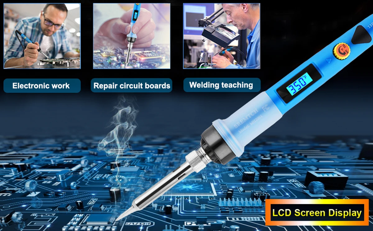 1: Паяльник мощностью 80 Вт быстро нагревается благодаря технологии внутреннего нагрева керамики, высокой термостойкости, может защитить ваши сварочные предметы. 2: паяльник с ЖК-дисплеем высокой четкости, который более четко показывает статус температуры.3: комплект паяльника поставляется с кнопкой включения и кнопкой регулировки температуры, поэтому его можно легко и свободно включать/выключать или регулировать температуру, которая вам нужна.4: Изготовлен из японской технологии точной печати и комплект для пайки можно спечать при высокой температуре и долго использовать.5: Если вы хотите узнать, как припаять, этот стартовый набор паяльника идеально подходит для ваших нужд. Это очень удобно и компактно.6: нескользящая Мягкая резиновая ручка для максимального комфорта и безопасной пайки.