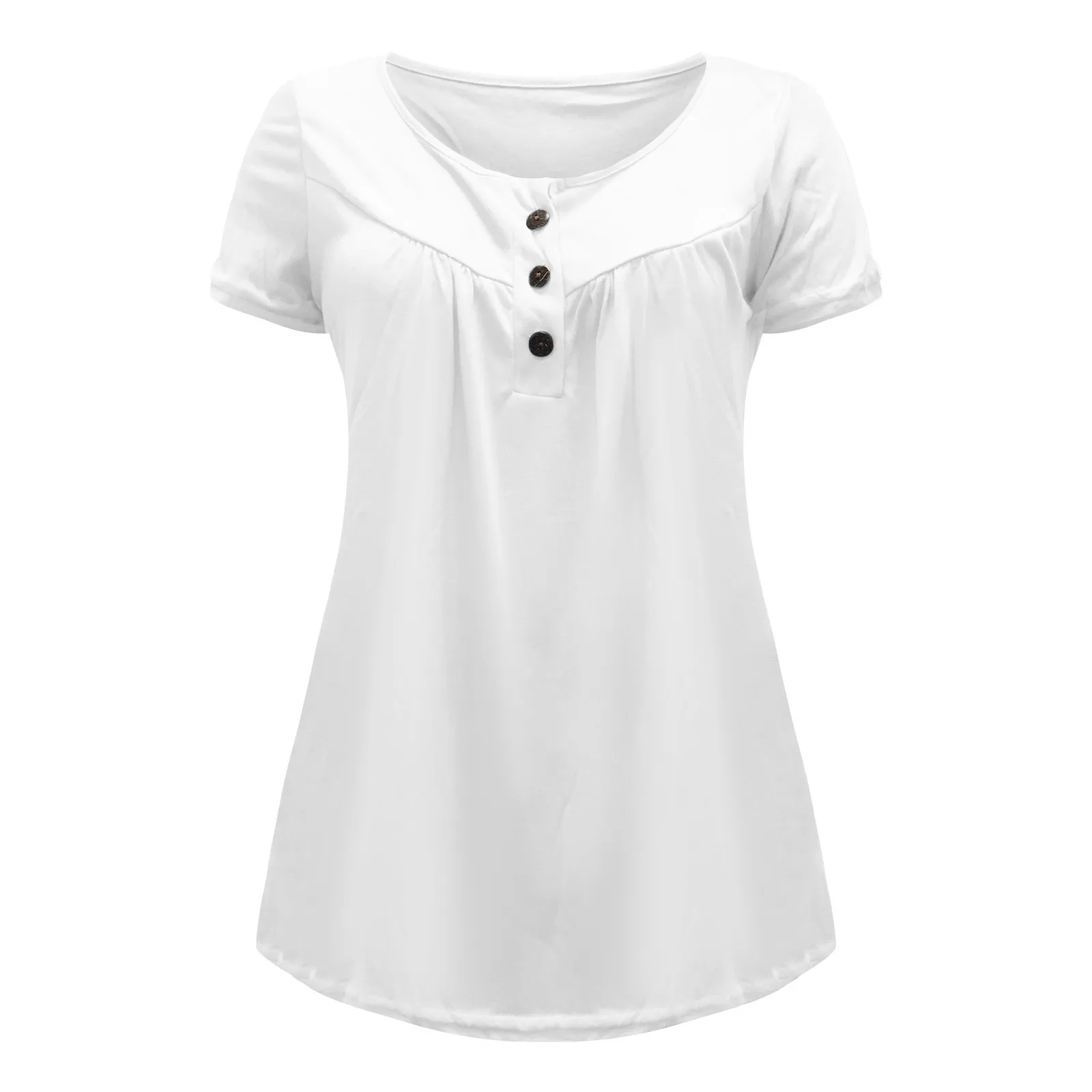 Женская Однотонная футболка с короткими рукавами и круглым вырезом, топ с лямкой на шее, жилет цветок, рубашка с рукавами, плиссированная повседневная одежда для беременных