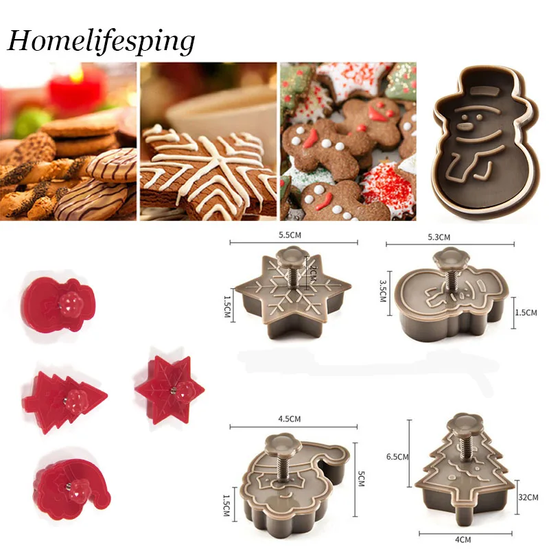 4 шт. DIY рождественская елка Снеговик Пластик пресс-формы для выпечки Кухня печенье печенья тесто Поршень Инструменты для украшения тортов из мастики