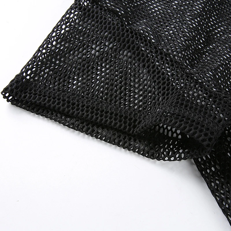 Футболка с короткими рукавами для женщин сетчатый топ с капюшоном с вырезами пикантные шорты в стиле панк-рок укороченный топ белая футболка в сеточку черного цвета