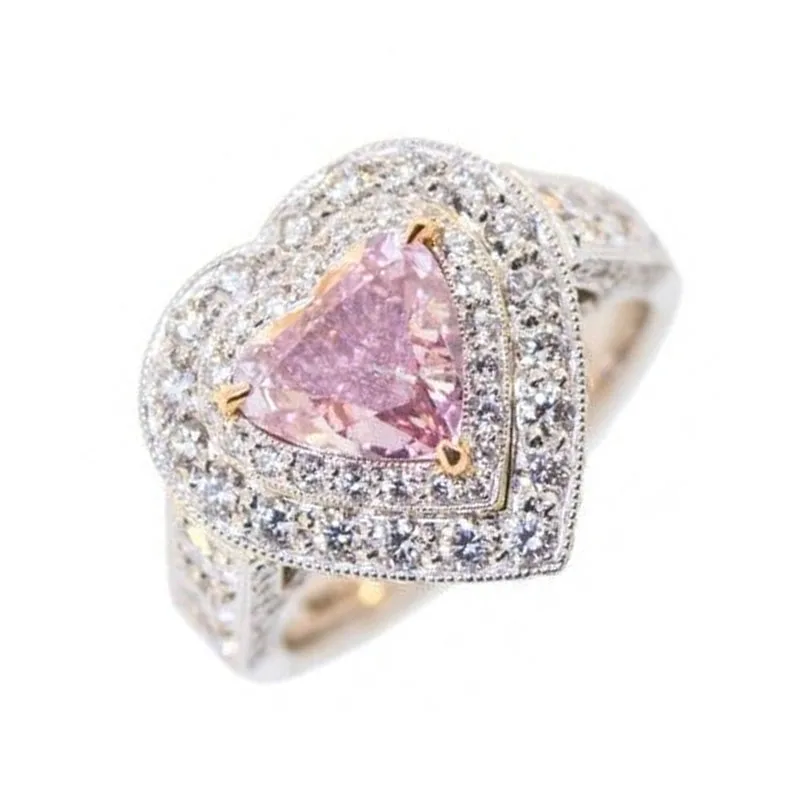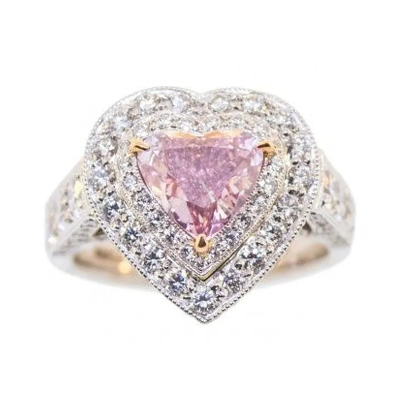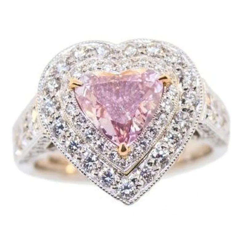 Классический инкрустированные розового цвета с принтом сердце, Любовь в форме сердца с цельными круглыми кристаллами циркония Стразы женское кольцо для женщин, ювелирное изделие для помолвки, свадьбы
