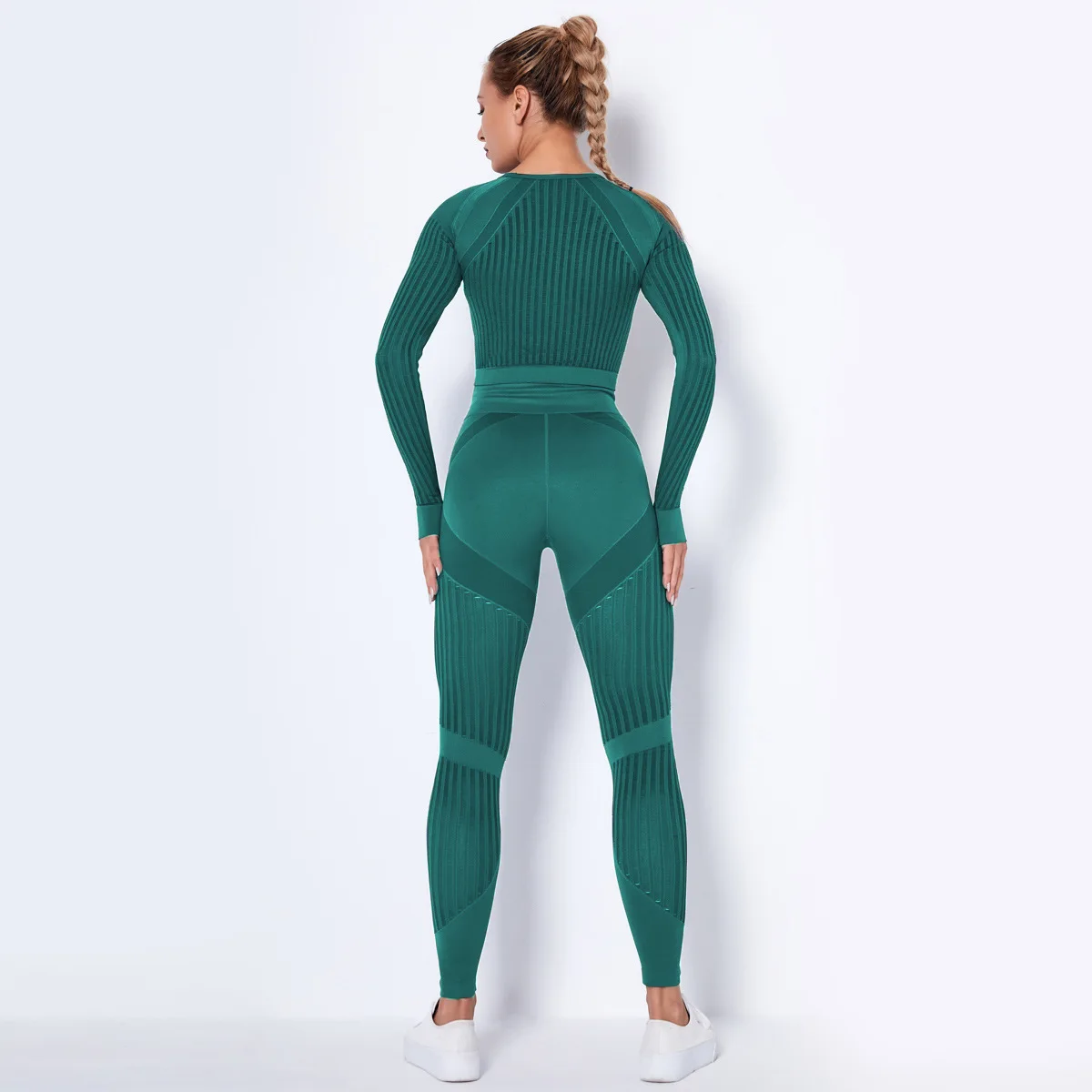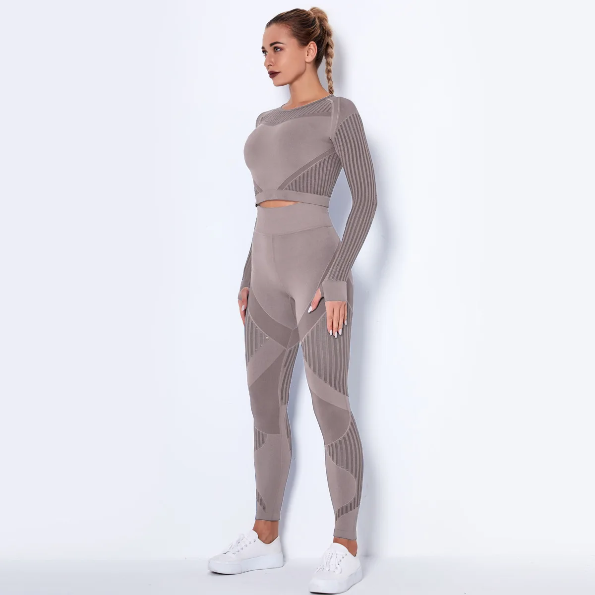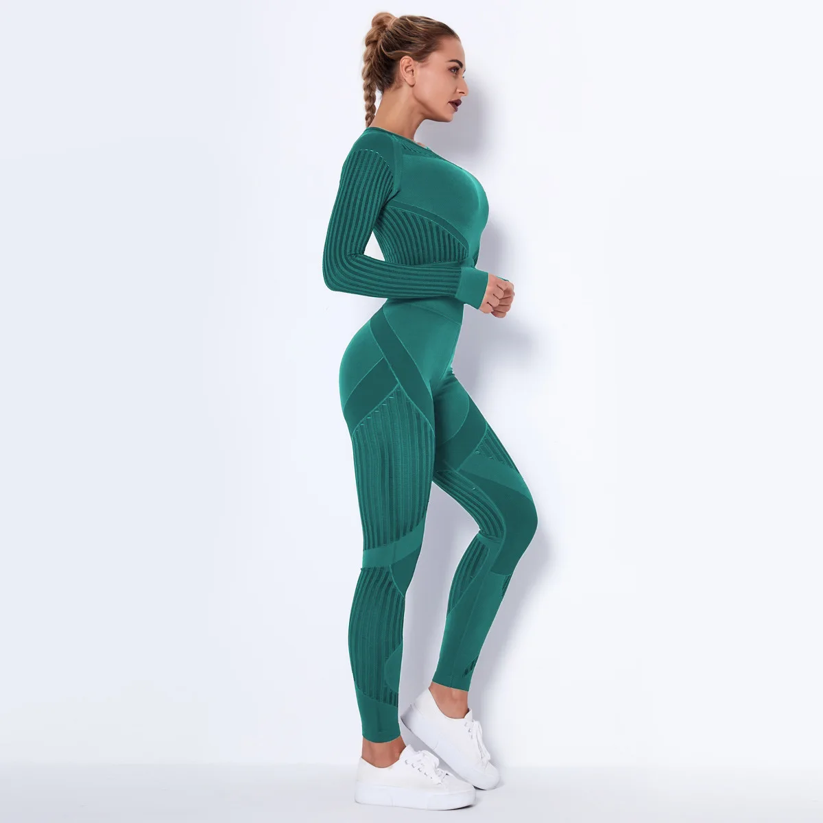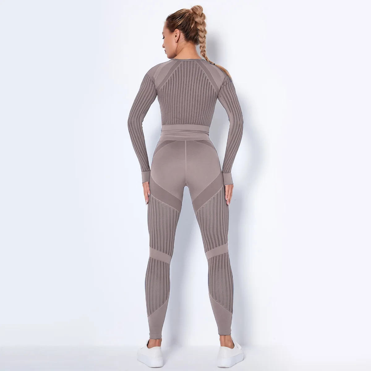 Спортивный костюм женский, трикотажный, бесшовный, с длинными рукав...