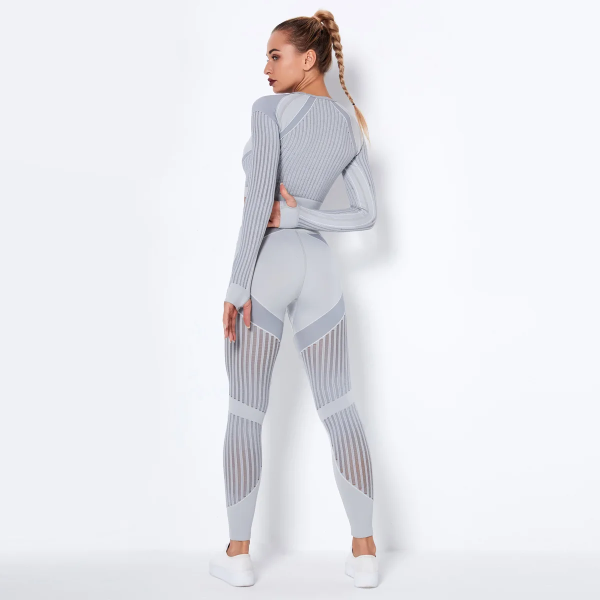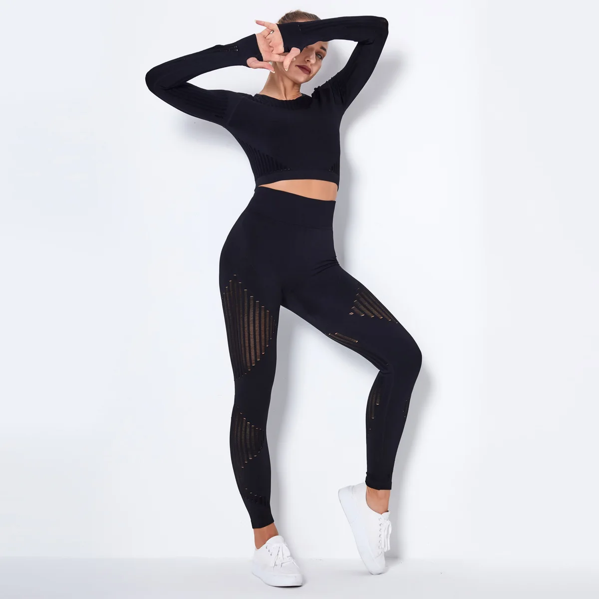 Тренировочная одежда для женщин, бесшовный ажурный костюм для йоги ...