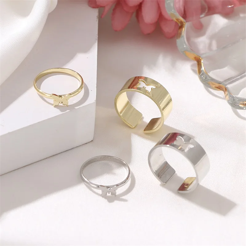 Набор открытых колец FINEBI, золотые бабочки, кольца для мужчин и ж...