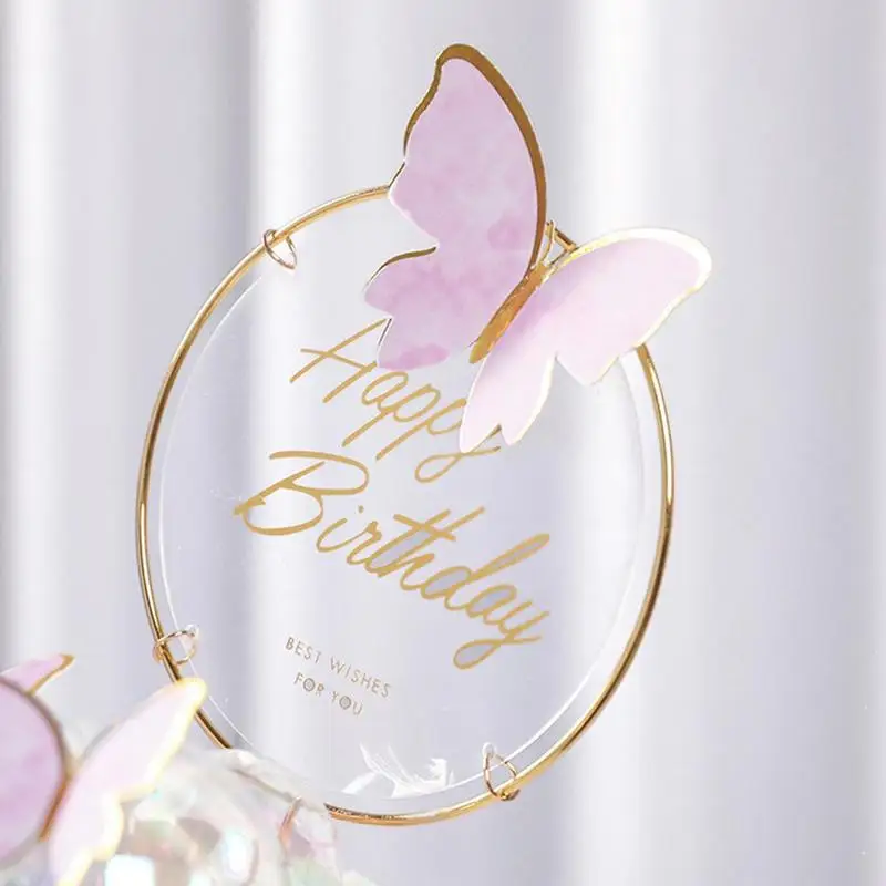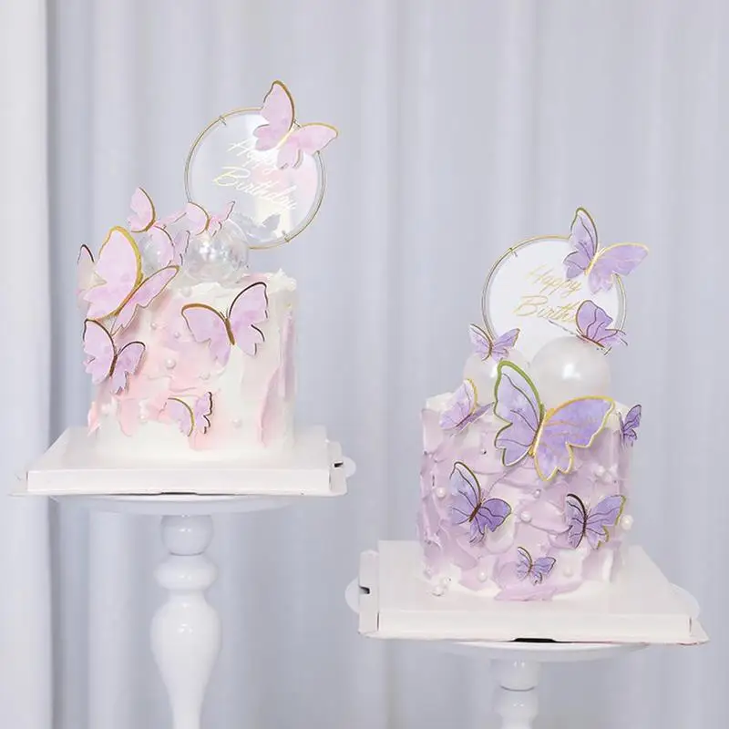 2021, новый Топпер для торта в виде бабочки, розовый, фиолетовый То...