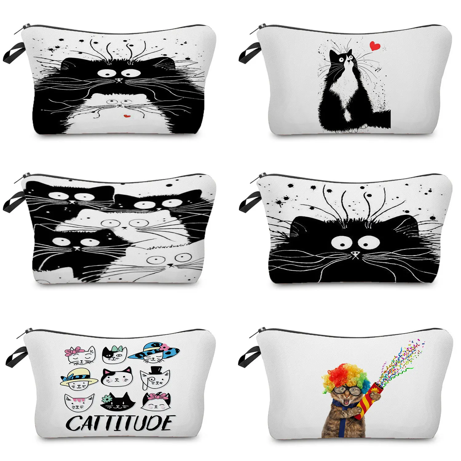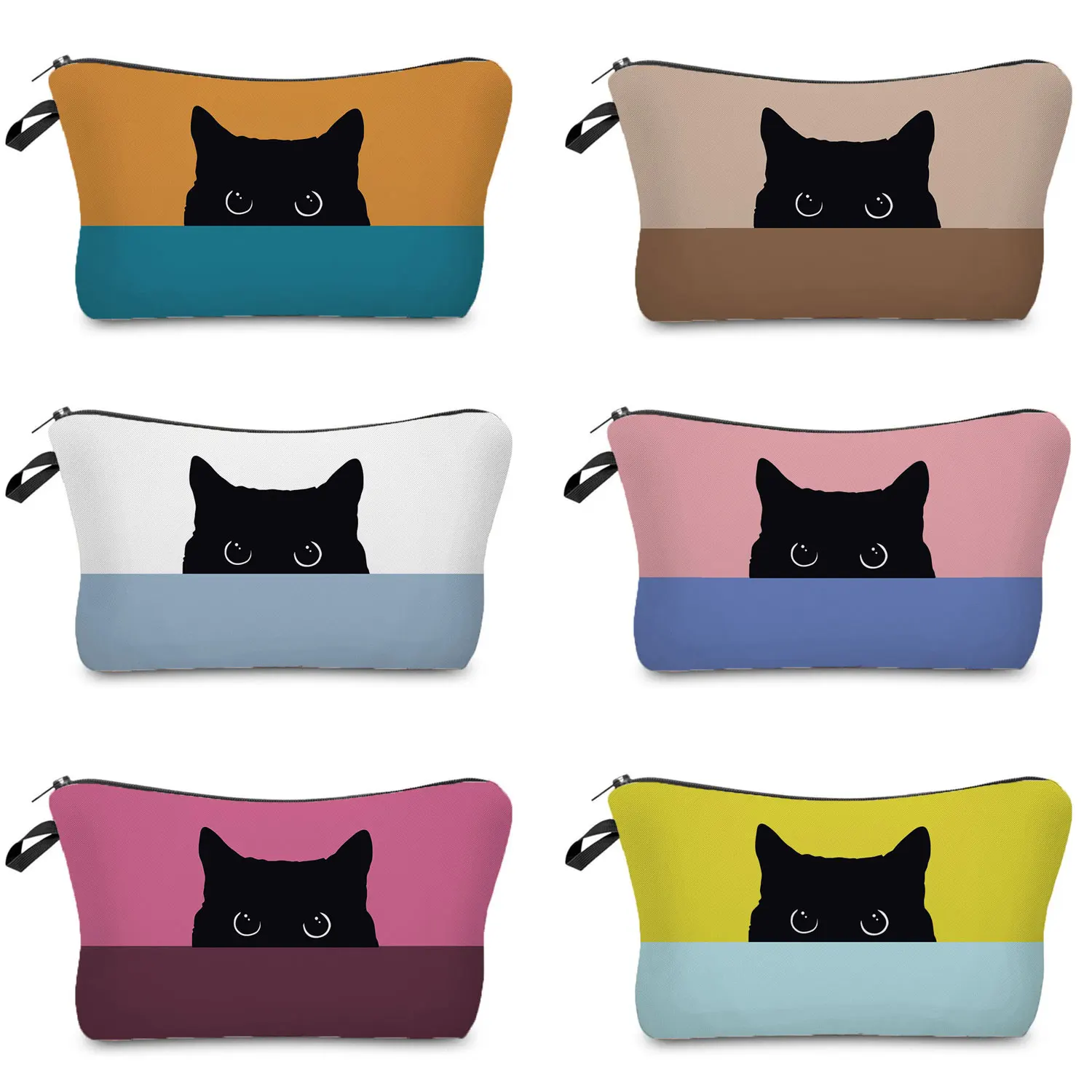 Лидер продаж, женская косметичка с принтом черной кошки, милая Повс...