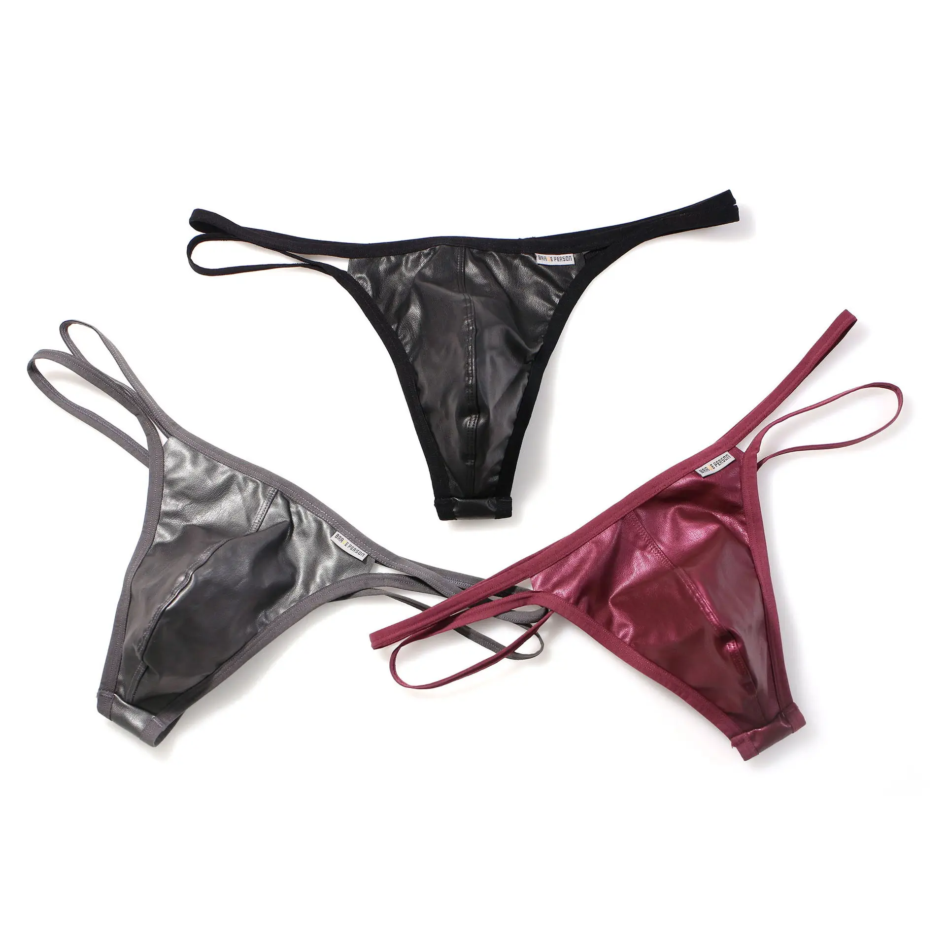 Мужские стринги из искусственной кожи, бикини, танга, сексуальное нижнее белье, B1184