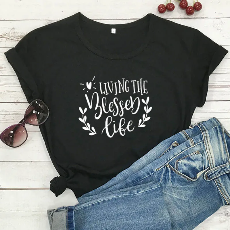 Живой благословенная Жизнь футболка эстетическое с христианскими текстами и считаем, Женские рубашки из хлопка повседневная Футболка Harajuku с коротким рукавом футболки для девочек