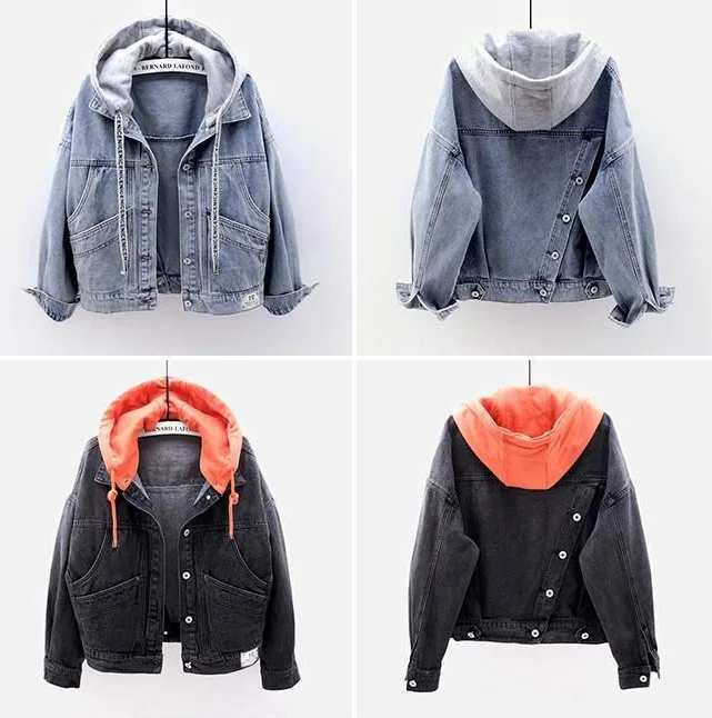 Джинсовая женская куртка в Корейском стиле, блестящая женская куртка с длинным рукавом и капюшоном, однотонный топ на пуговицах с несколькими карманами, A10