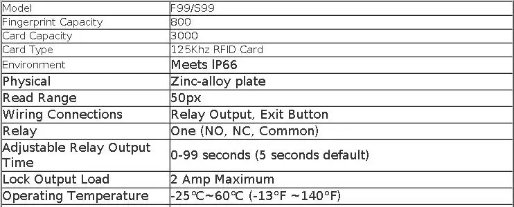 S99 является rfid-контроллером, без отпечатков пальцев;