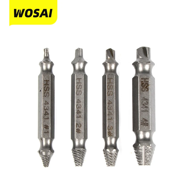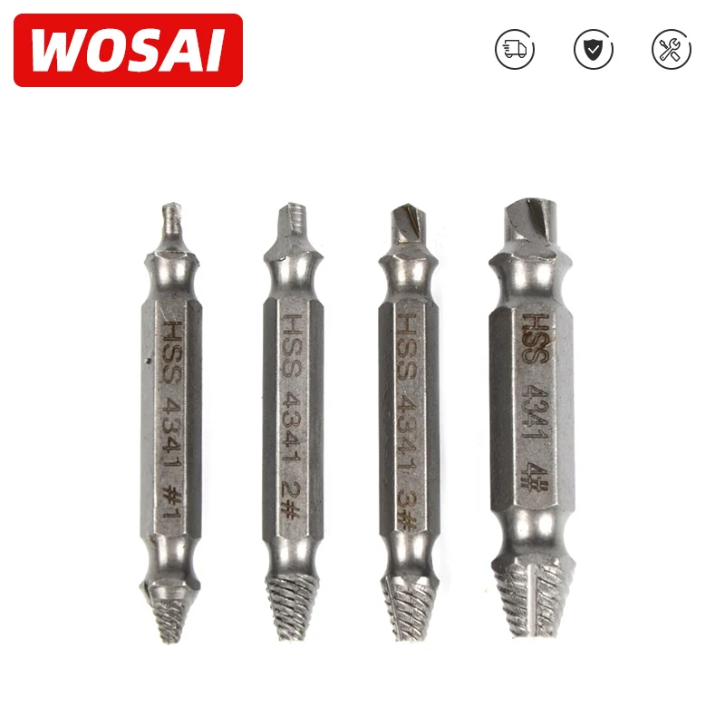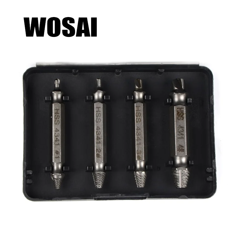 Винтовой экстрактор VVOSAI из быстрорежущей стали, 4 шт. Двухголовый экстрактор винтов. Комплект направляющих для сверл. Устройство для удаления поврежденных болтов.