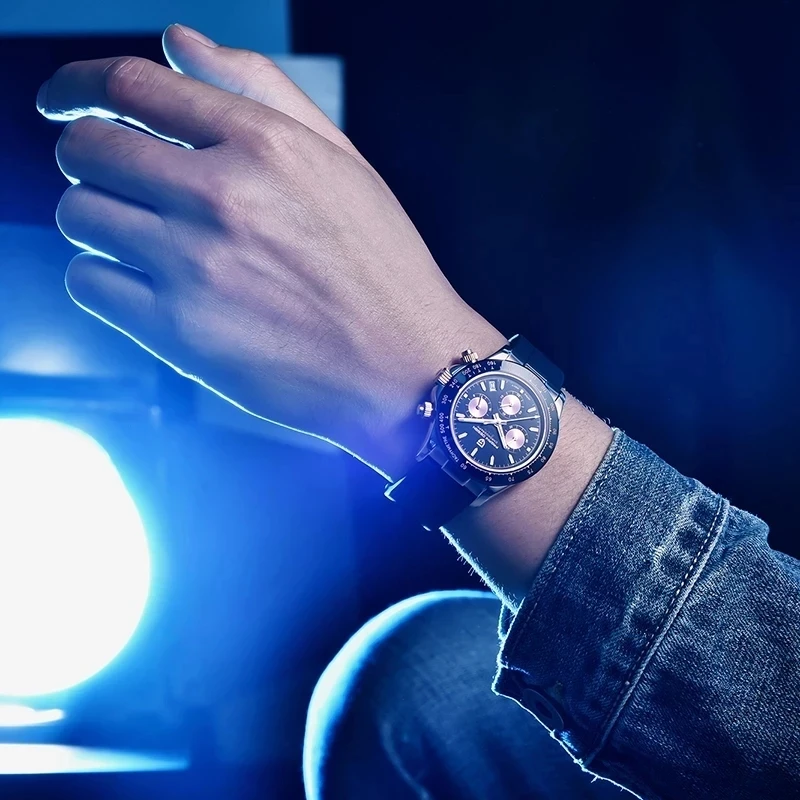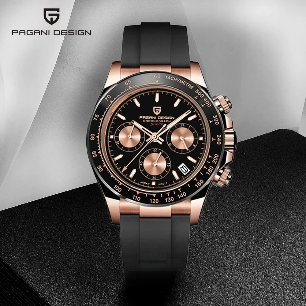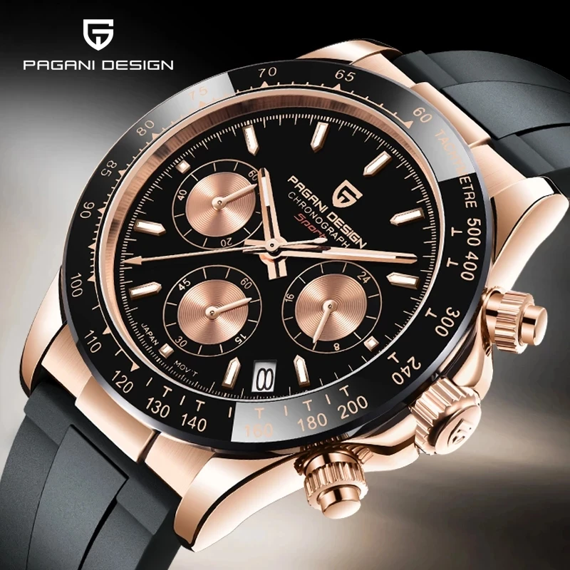 Часы наручные PAGANI Мужские кварцевые, брендовые Роскошные модные с сапфировым стеклом, с резиновым ремешком, с хронографом