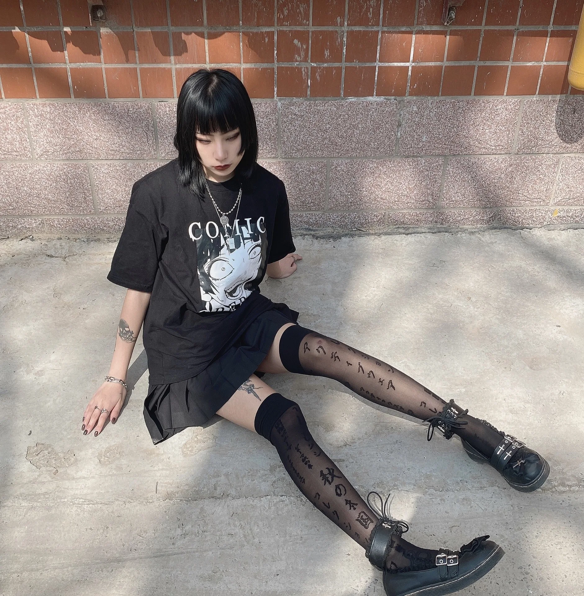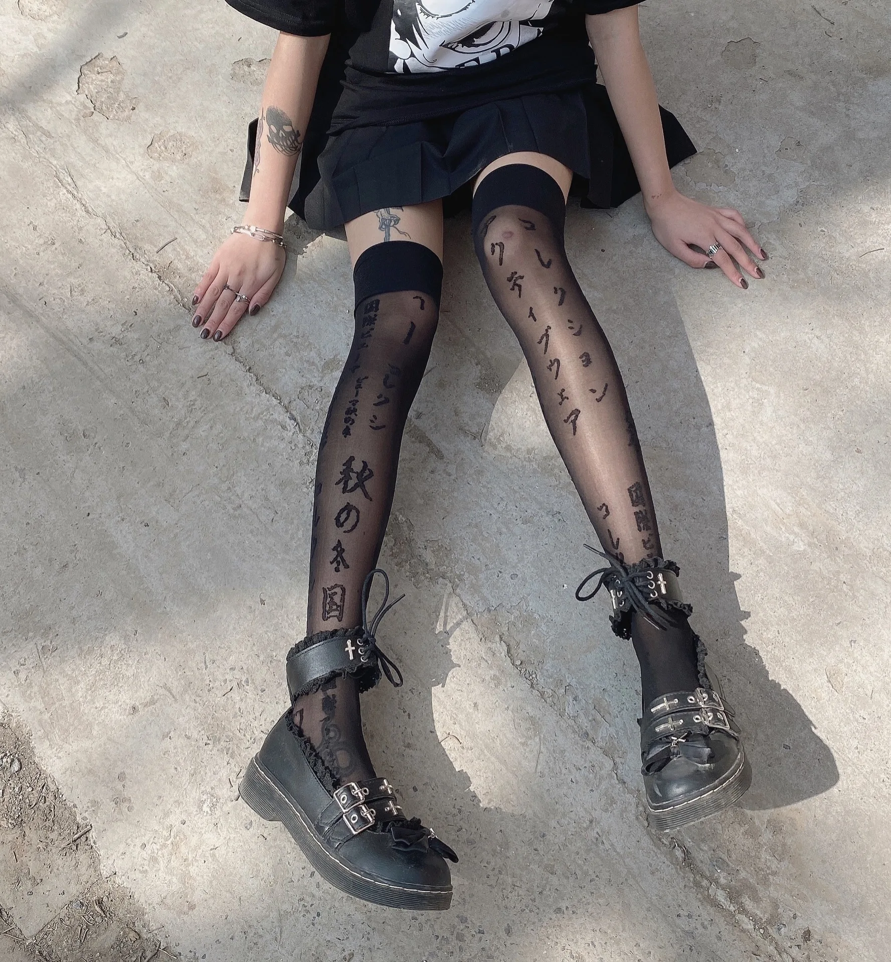 Женские сексуальные японские колготки с буквенным принтом, необычные татуировки с рисунком, бесшовные шелковистые колготки, готические панк чулки в сеткуМатериал: нейлон + акрилСвободный размер.