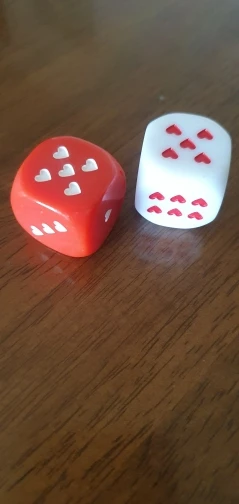Особенность:-- 100% Новинка и высокое качество.-- Изготовлен из высококачественного акрилового материала.-- Идеально подходит для самых разных игр в кости и математических игр.-- Уникальные и креативные кости в форме сердца.Спецификация:Тип: игральные костиЦвет: белый + красныйМатериал: акрилРазмер: 25*25 ммПосылка: 2 кубика