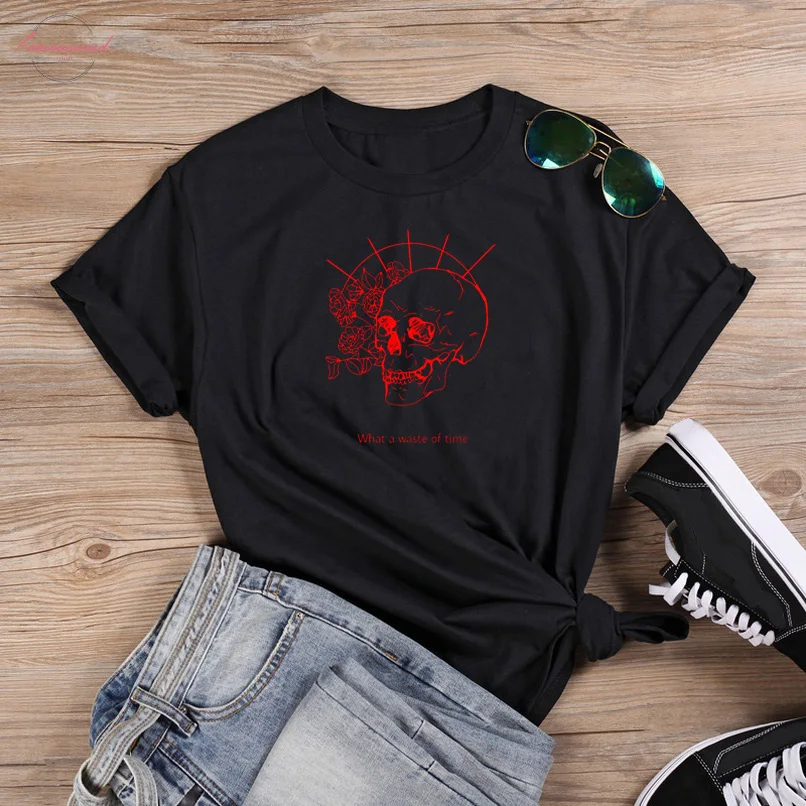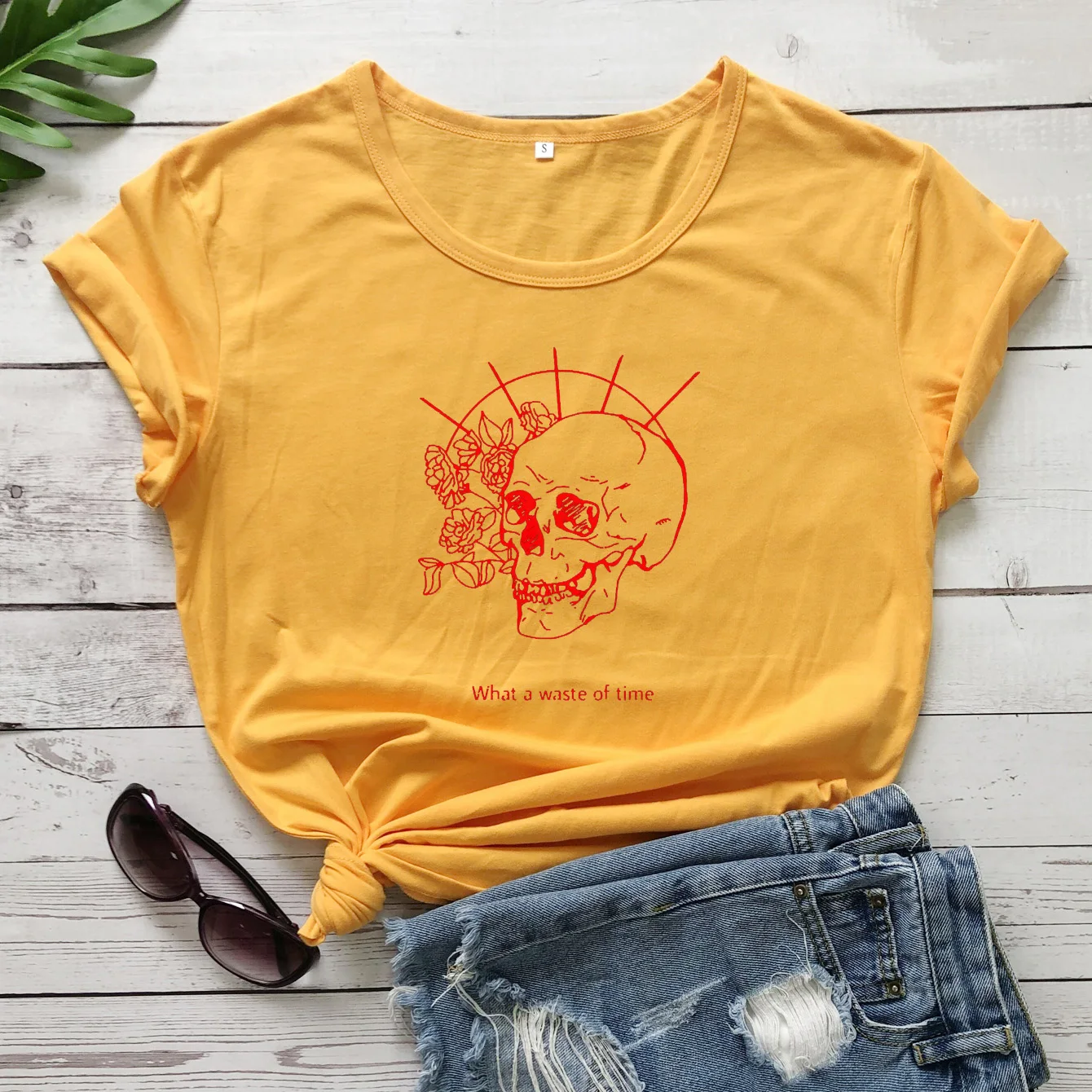 Какая трата времени, Готическая футболка с черепом, унисекс, женская графическая цитата, 100% хлопок, гранж, хипстер, Повседневная модная футболка, топ