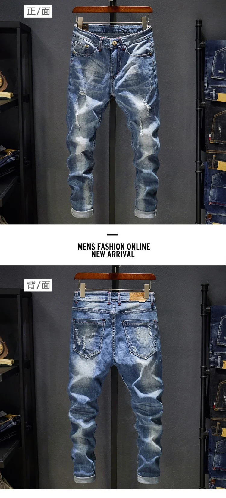 Мужские потертые джинсы с дырками, повседневные хлопковые облегающие синие длинные брюки, мужские джинсы из денима, мотоциклетные байкерские осенние джинсы, новинка 2020