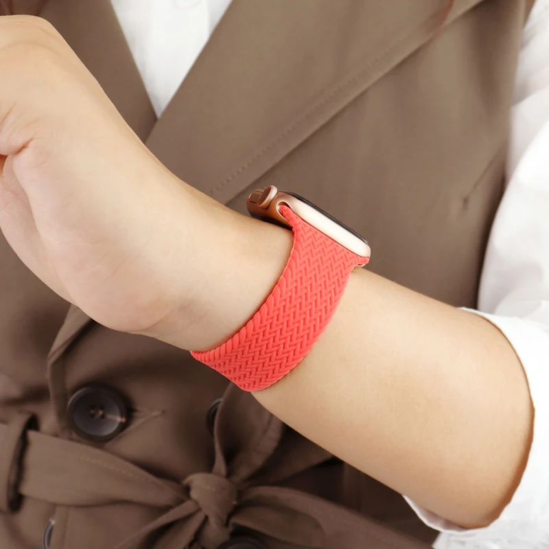 Ремешок силиконовый Solo Loop для Apple watch band 44 мм 40 мм 35 мм 48 мм, эластичный плетеный текстурный браслет для iWatch band 7 6 5 4 3 se