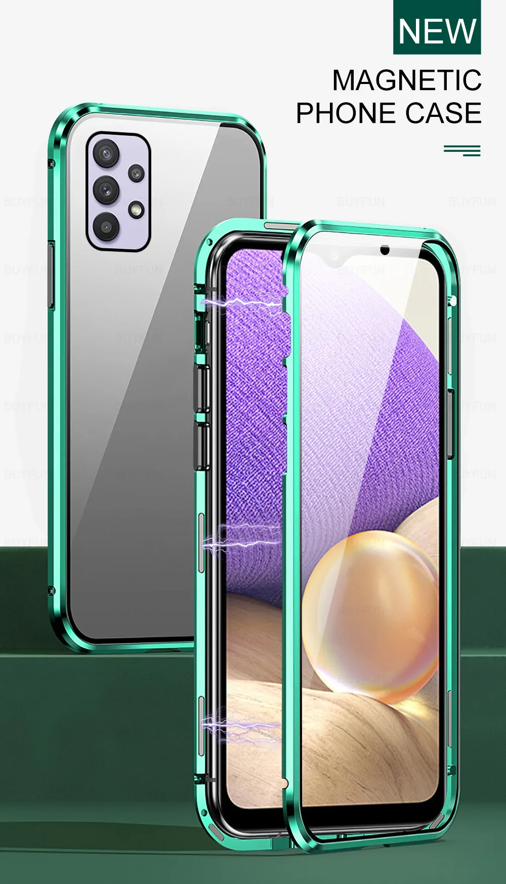 Магнитный чехол-книжка для samsung galaxy a32 a 32 360 4g 2021, металлический бампер, 5g