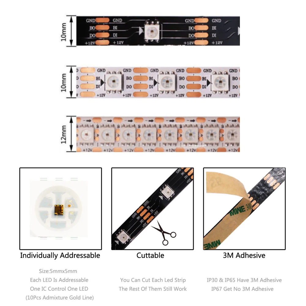 WS2815 (WS2812B WS2813 обновленная) Светодиодная лента, умная RGB индивидуально Адресуемая двойная сигнальная 30 60 светодиодный sM DC12V