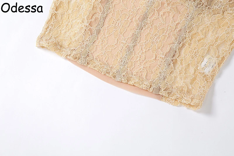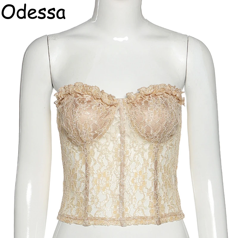Одессу с открытыми плечами сетчатый Корсет Топ сексуальное женское кружевное платье без рукавов прозрачная Y2K трубка Slash шеи летний Повседневный укороченный топ с запахом 2021