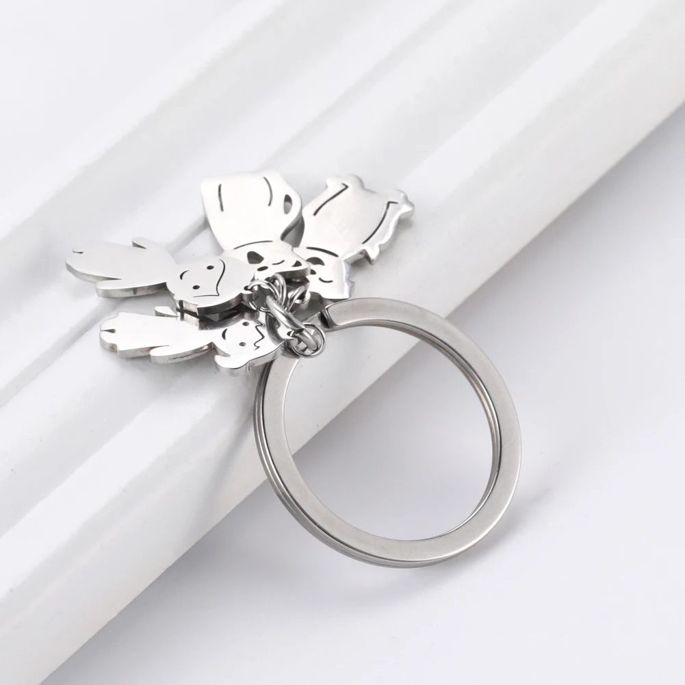 Брелок для ключей в виде кошки, собаки, из нержавеющей стали
