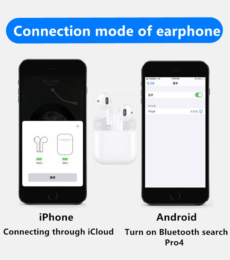 Беспроводные наушники Pro4, TWS наушники с Bluetooth, автоматическая выдвижная Спортивная стереогарнитура, водонепроницаемая гарнитура с микрофоном для Xiaomi, IPhone