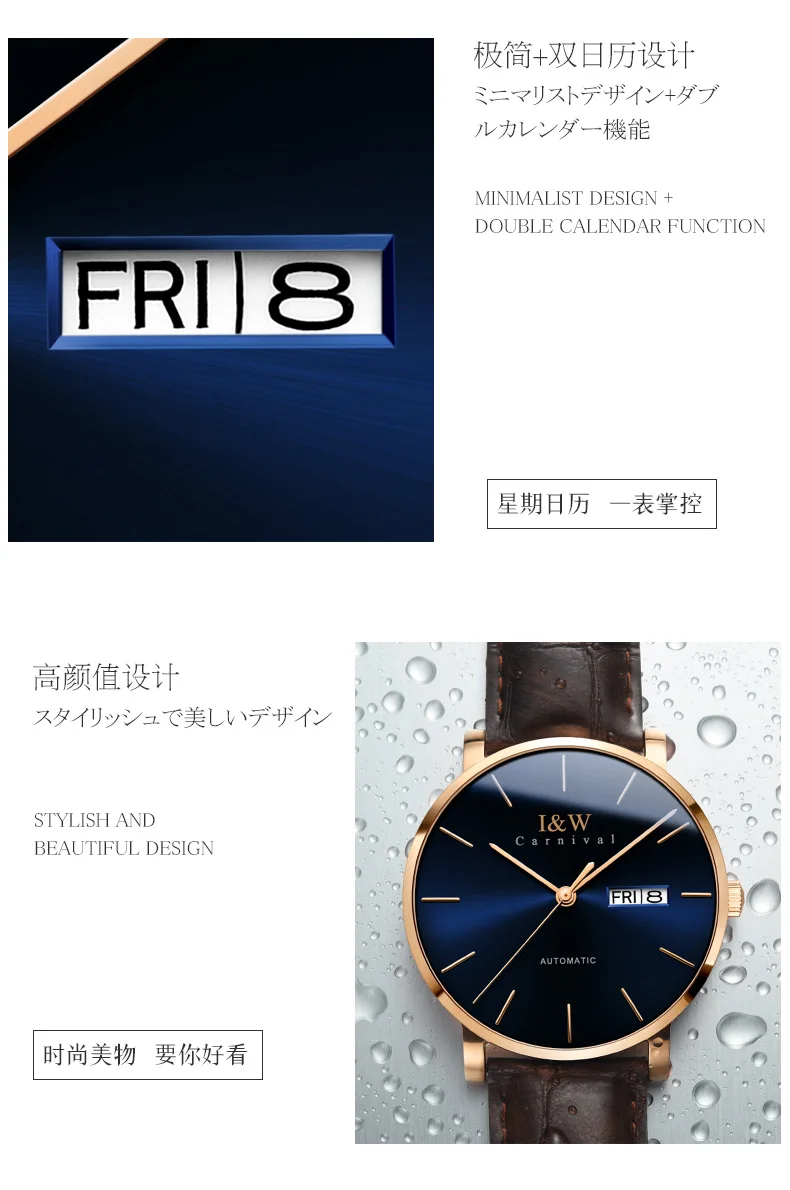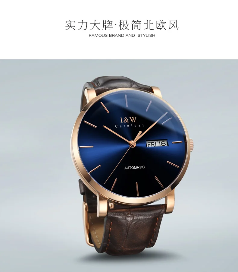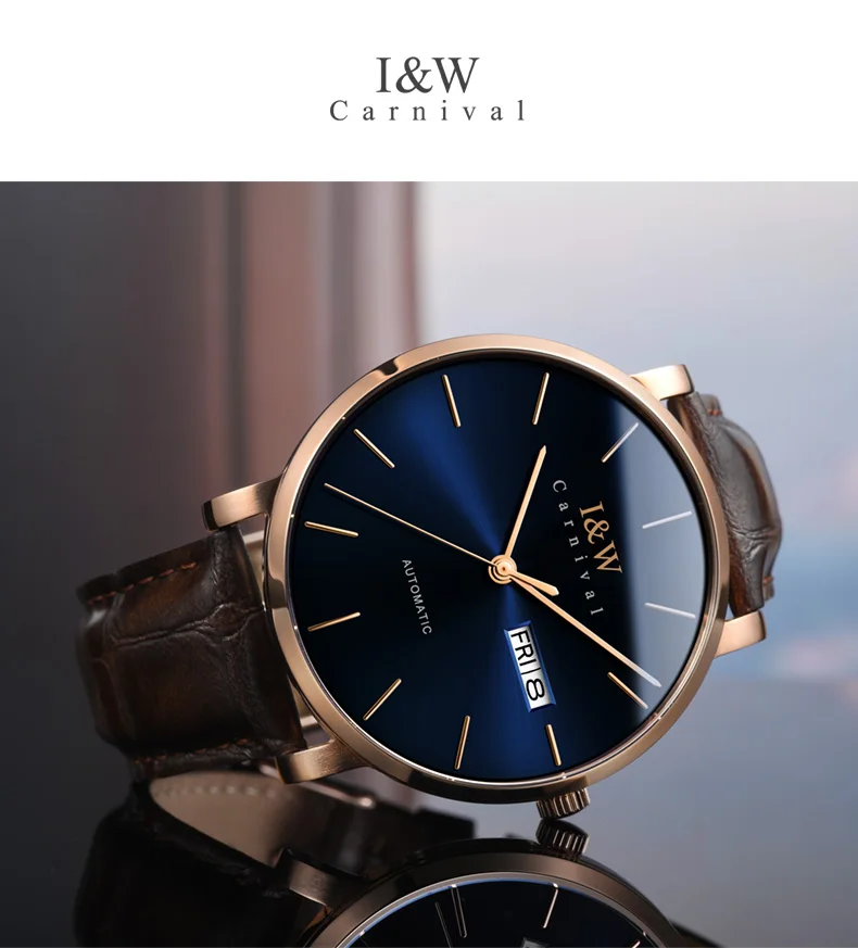Карнавал 8028G Новый механические часы Для мужчин люксовый бренд Для мужчин Мужские автоматические механические часы сапфировые наручные часы мужской Водонепроницаемый Reloj Hombre