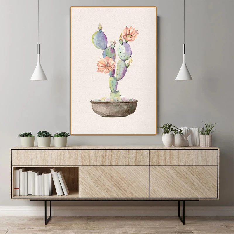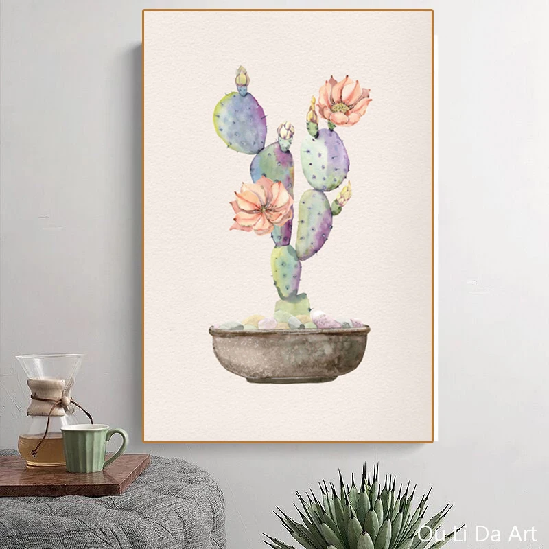 Художественная картина в горшке, цветок кактуса, картина маслом на холсте, плакаты и принты, современная картина для украшения стен дома