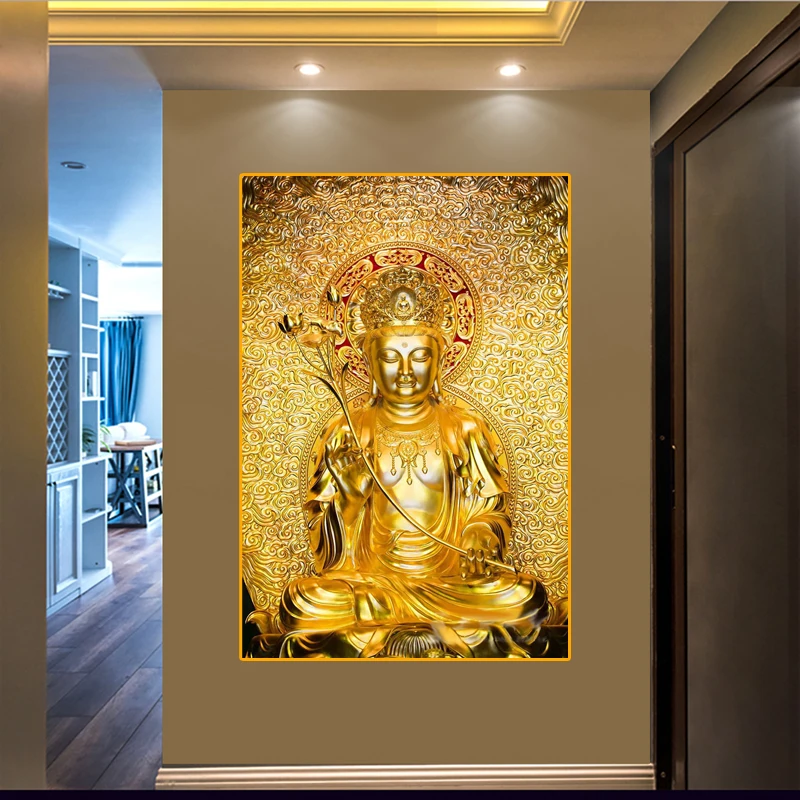 Золотая Статуя Будды, Картина на холсте, буддийская религиозная, настенные художественные плакаты, принты, современные украшения для гостиной, дома