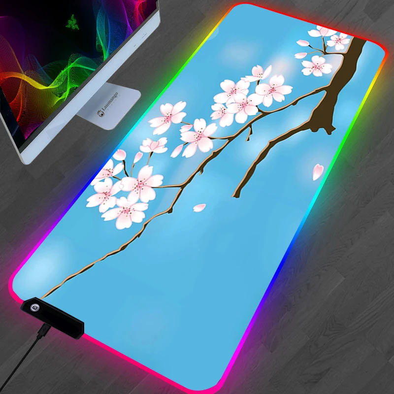 Коврик для мыши, большая компьютерная клавиатура, игровые аксессуары, RGB, цветущая вишня, розовый цветок, Настольный коврик, ковер с Сакурой, коврик для мыши CS GO