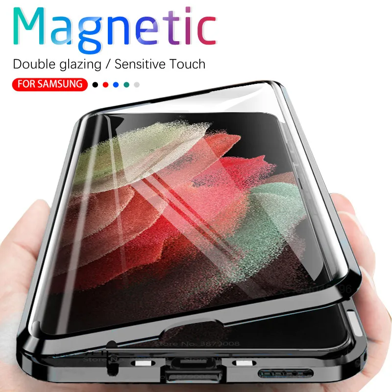 Чехол для Samsung S 21 Ultra, магнитный металлический чехол с поворотом на 360 для Samsung Galaxy S21 Plus S21Ultra, двухсторонние стеклянные чехлы для телефонов