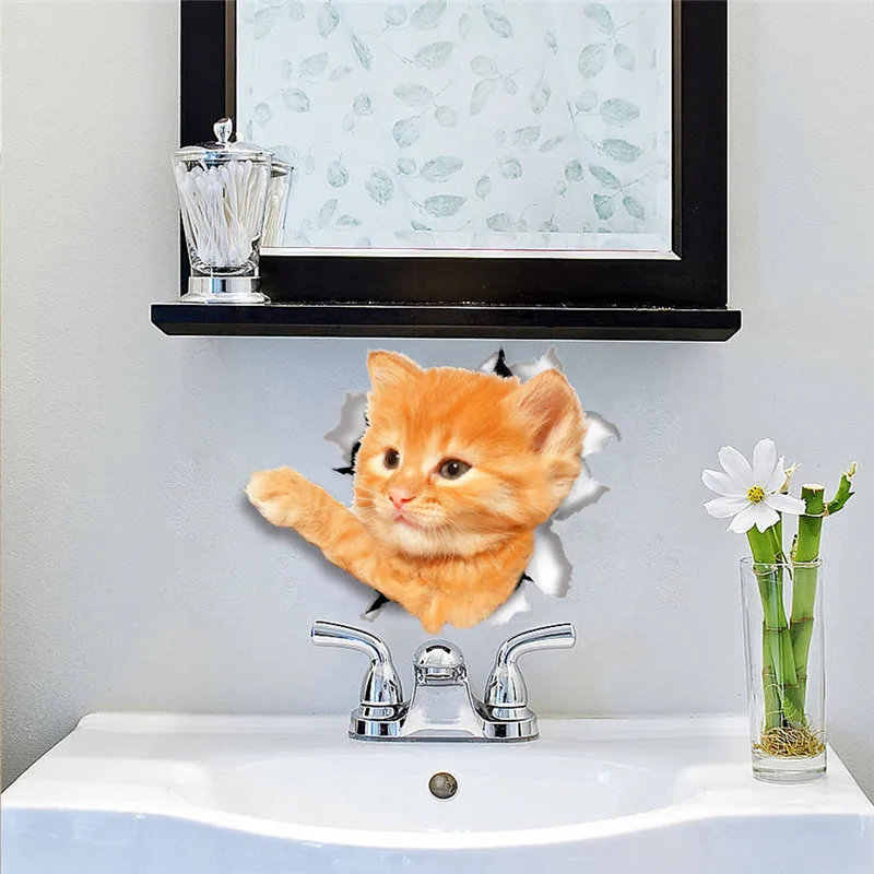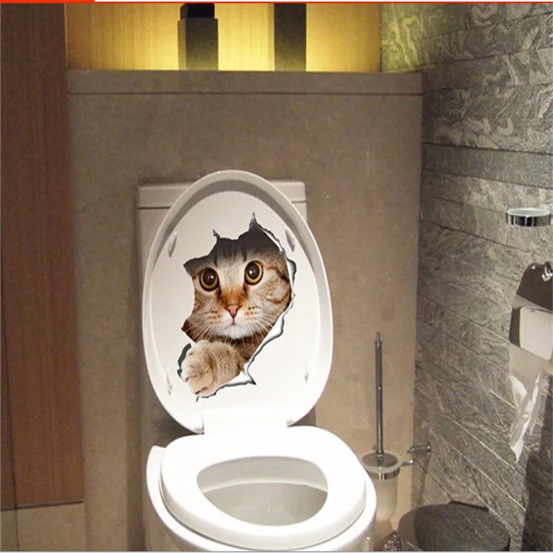 Яркие отверстием вида милые кошки Туалет Стикеры 3D животное собака стены Стикеры декоративные Ванная комната стены Стикеры s домашний декор личность