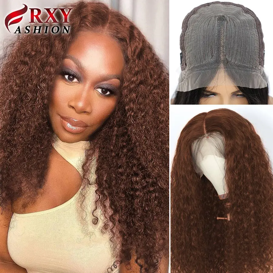 Кудрявый кудрявый парик T часть парик на сетке коричневые человеческие волосы цветные человеческие волосы парики для женщин Бразильский Реми предварительно выщипанные с детскими волосами