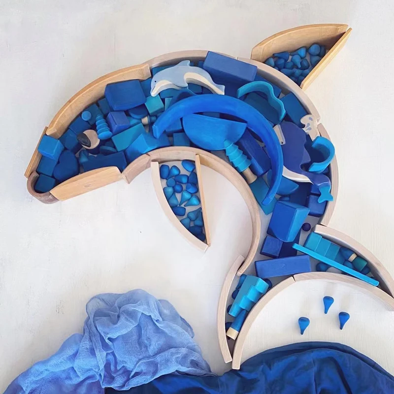 Детский игровой набор Монтессори и Вальдорф, деревянные игрушки в стиле радуги, красочные радужные блоки, обучающие игрушки для детей