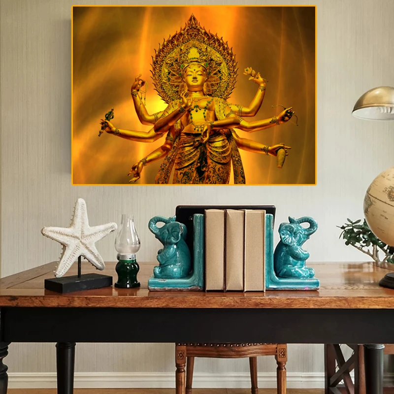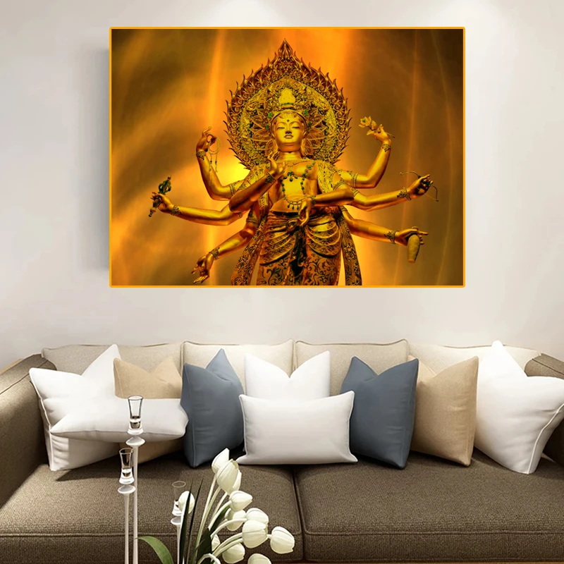 Картина на холсте Золотая тысяча рук, буддизм, настенные художественные плакаты, печатные картины для гостиной, украшение для дома