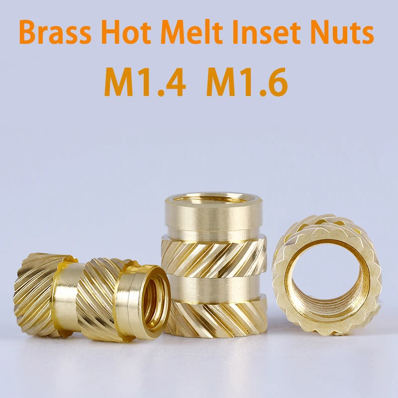 M1.4 M1.6 латунь термо плавкая вставка гайки нагрева литья Медь резьбы гайка с кольцевой вставкой SL-Тип двойная саржа с накатанной головкой впрыска Латунная гайка