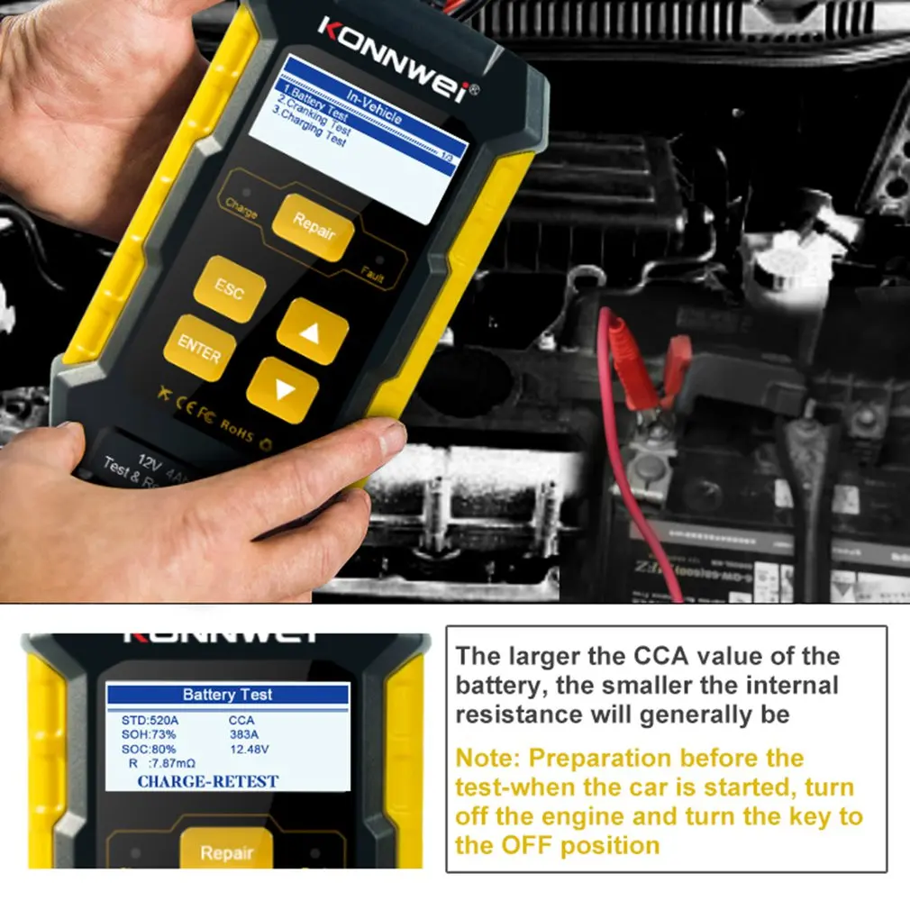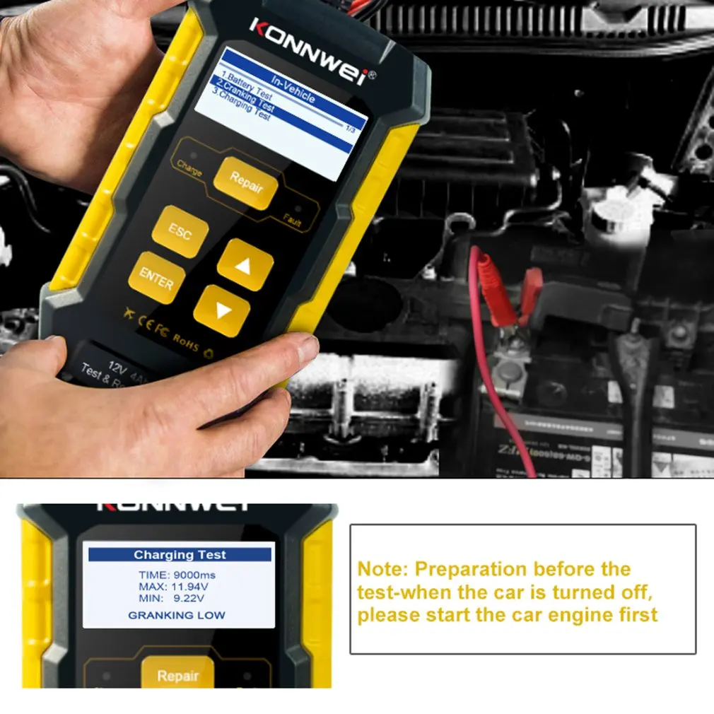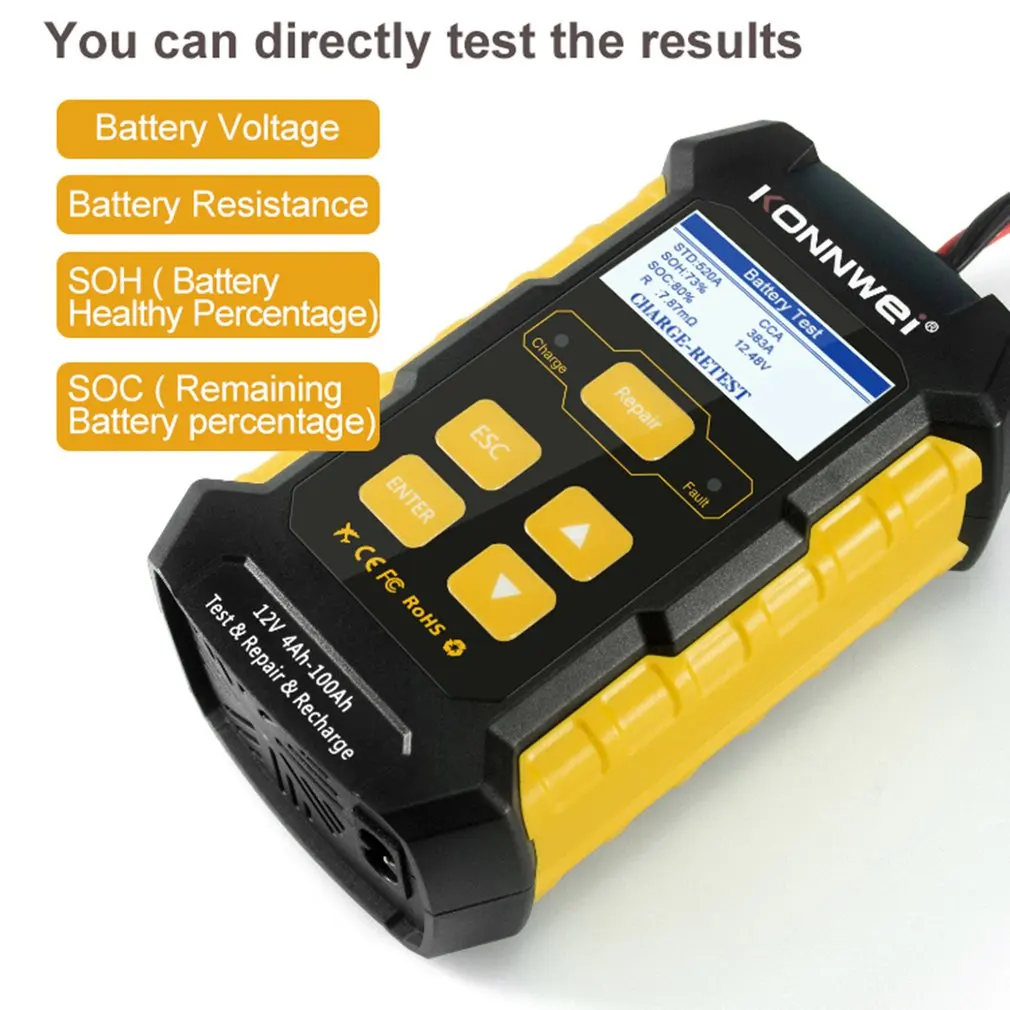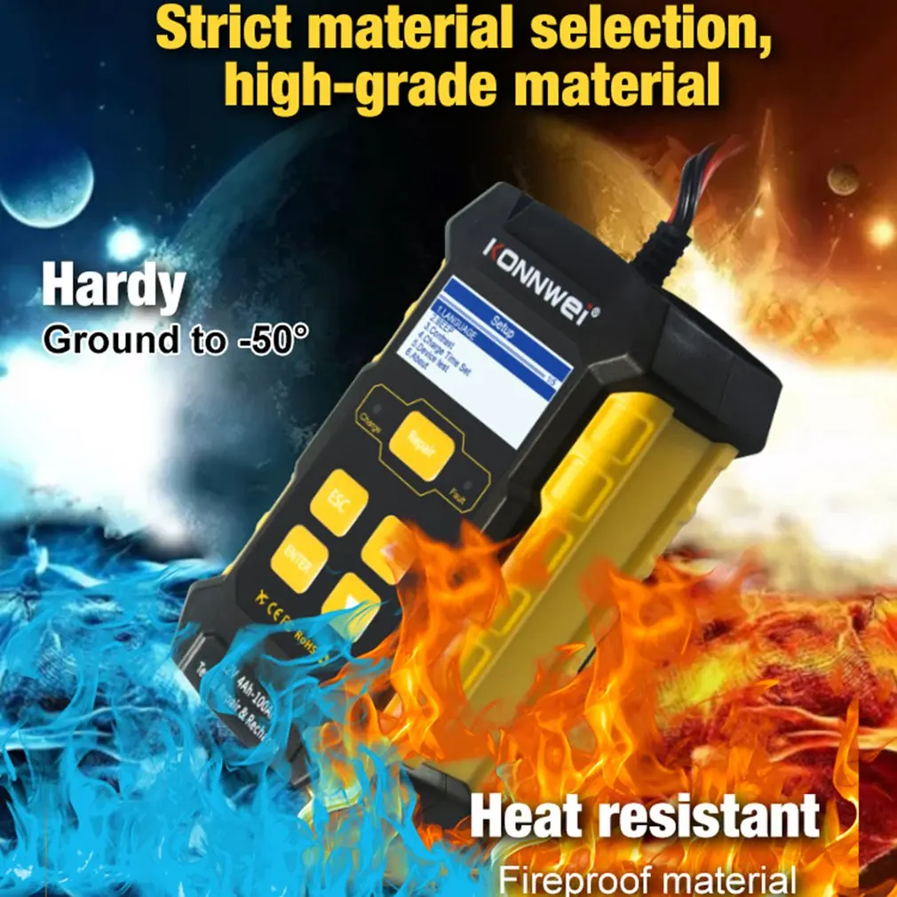 Этот продукт представляет собой тестер батареи, низкочастотный постоянный ток не повреждает автомобиль, анти-обратное соединение, защита от перенапряжения на входе является более безопасной.