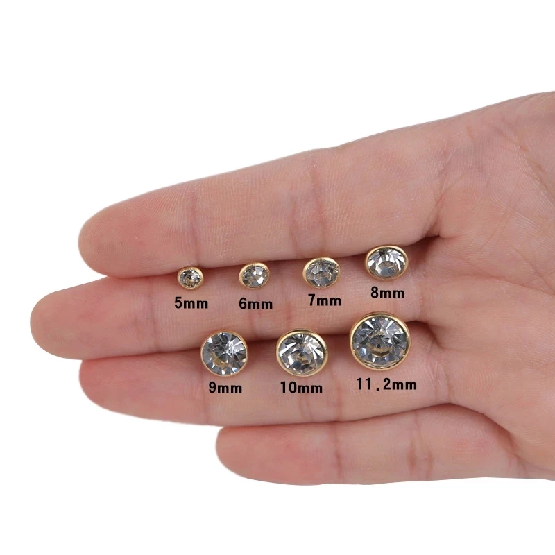 Заклепки для Стразы, 5-100 мм, золотистыесеребристые, со стразами, для украшения одежды, декоративные шипы для кожи, стеклянные сверла, гвозди, 11,2 комплектов
