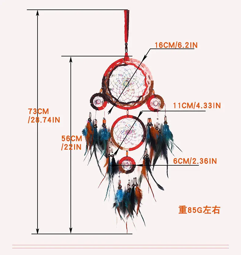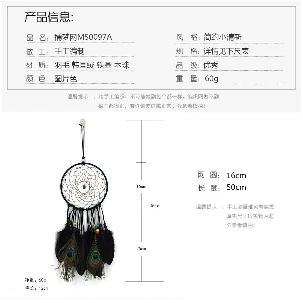 Посылка: 1 Ловец снов Материал: хлопок и перо Размер: как показано на фотографии Цвет: как показано на фотографии Стиль: ручная работа с кисточками макраме Характеристика: нетоксичный, экологичный Защита
