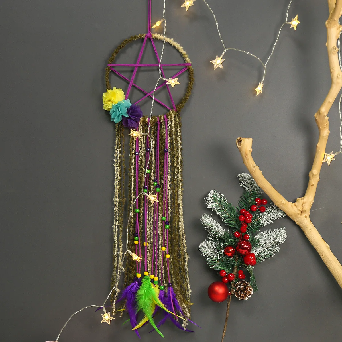 Индийский декор в стиле бохо, настенное украшение ручной работы, красочное перо, кольцо Ловца снов, колокольчик ветра, художественное украшение, украшение комнаты, подарок ручной работы