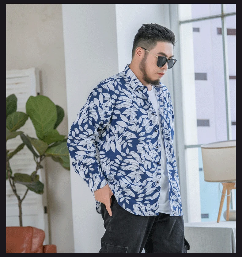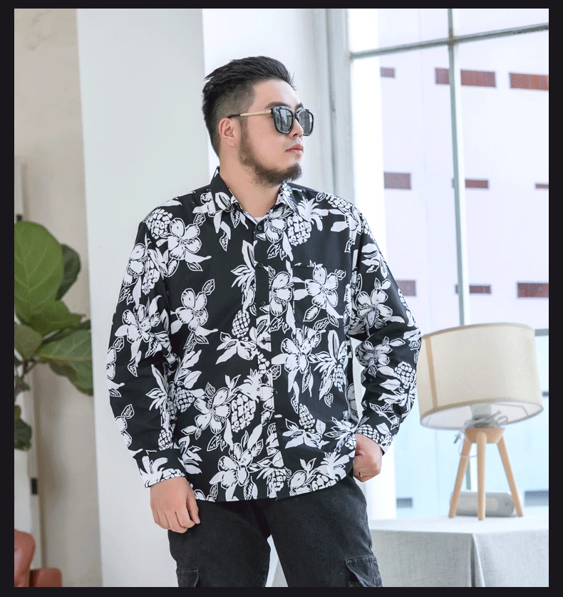 Гавайская пляжная рубашка для мужчин, винтажная блуза с длинным рукавом, с цветочным принтом, в стиле оверсайз, большие размеры 7XL 8XL 9XL 10XL