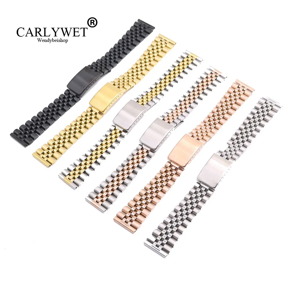 Ремешок CARLYWET из нержавеющей стали 316L для часов, сменный Браслет с золотым ремешком для Omega IWC Tudor Seiko Breitling, 20 мм