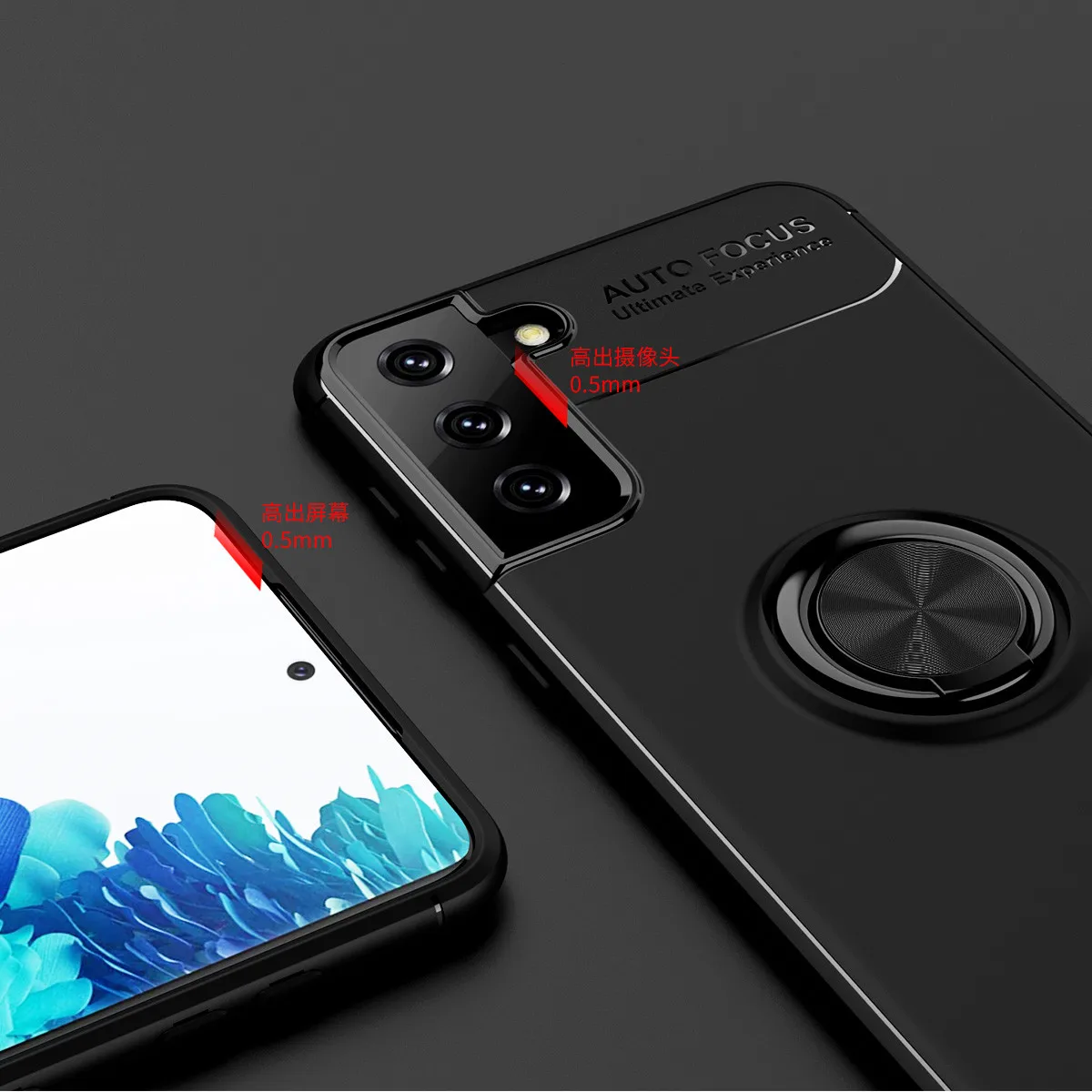 Мягкие чехлы для телефонов из ТПУ для Samsung Galaxy S21 FE S20 Ultra Note 20 10 Lite S10e S9 Plus с кольцом-держателем, магнитная защитная задняя крышка автомобиля