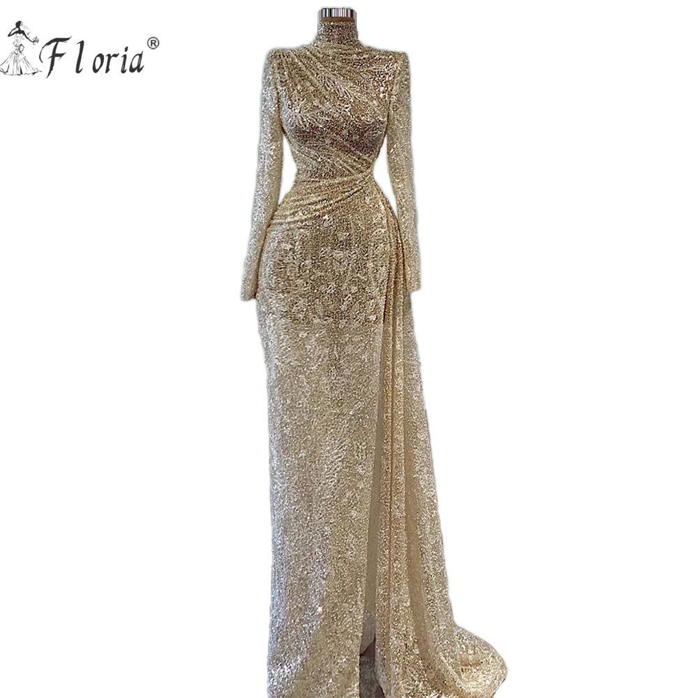 Вечерние платья с высоким разрезом и юбкой-годе, платья знаменитостей с длинным рукавом и бисером, женские платья для особых случаев из Дубая и Ближнего Востока