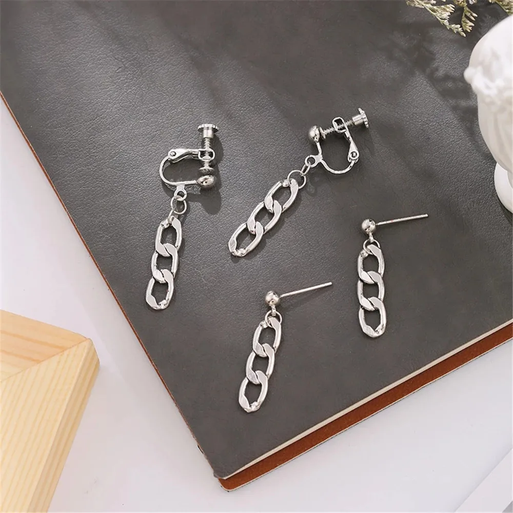 Новинка 2021, женские серьги-цепочки из титановой стали, серьги в стиле хип-хоп, крутой ветер, серьги с металлическими кисточками, клипса для ушей без проколотых ушей