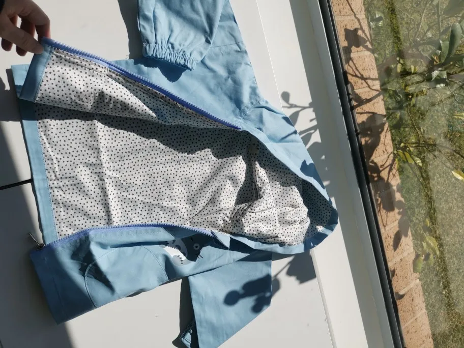 Цвет красивый, пошив широкий. На 92 см первый размер подешел