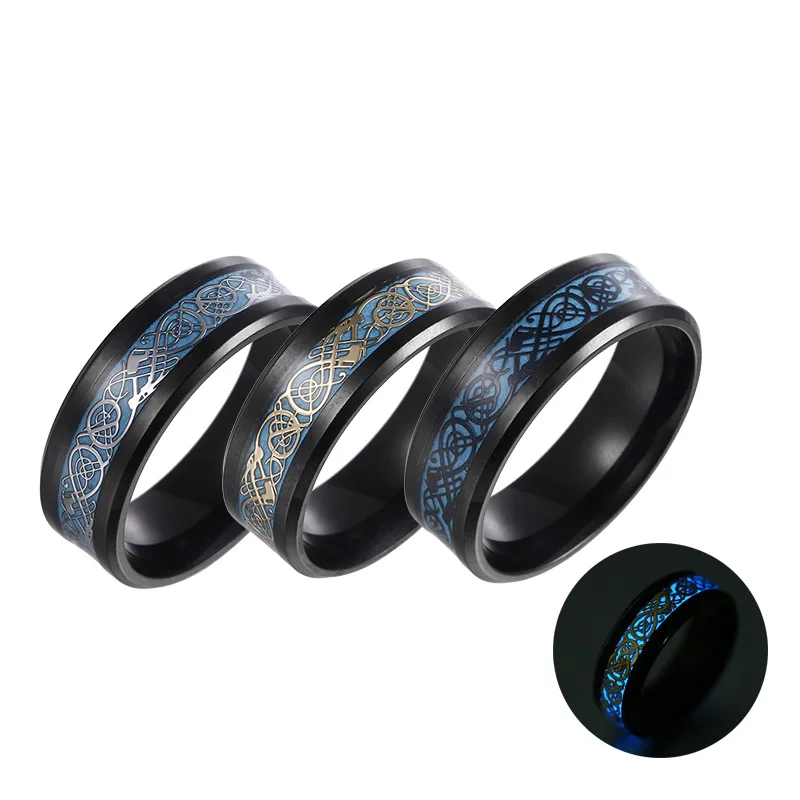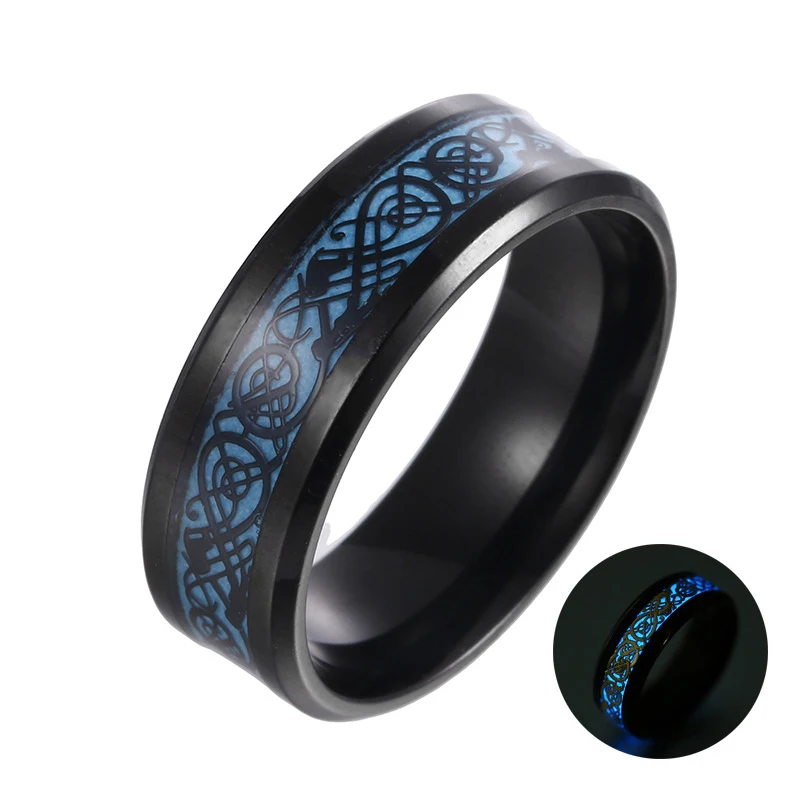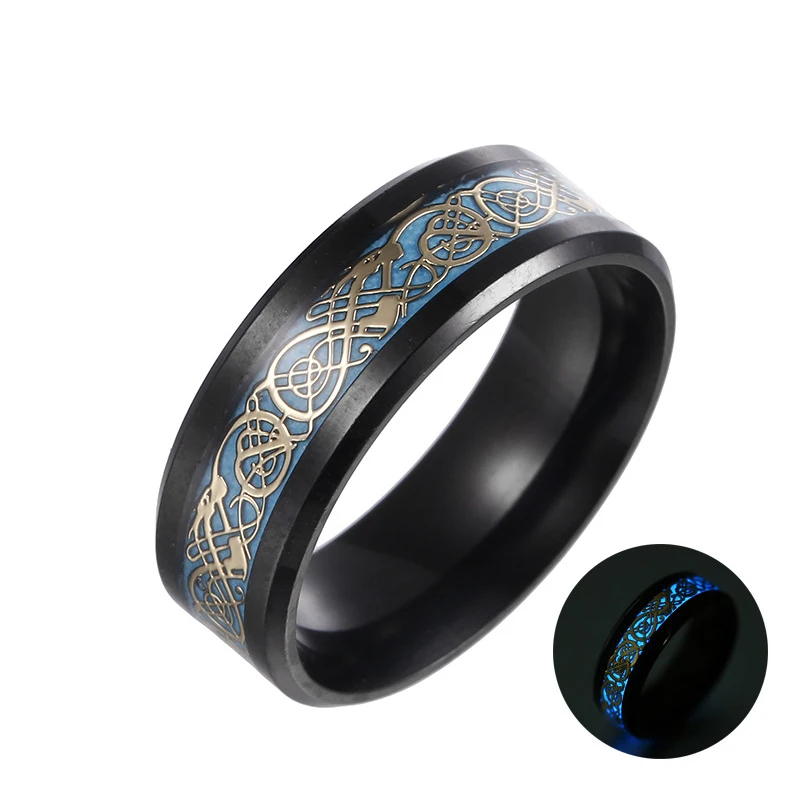 Светящиеся Кольца с драконом, черное ФЛУОРЕСЦЕНТНОЕ кольцо, мужское...