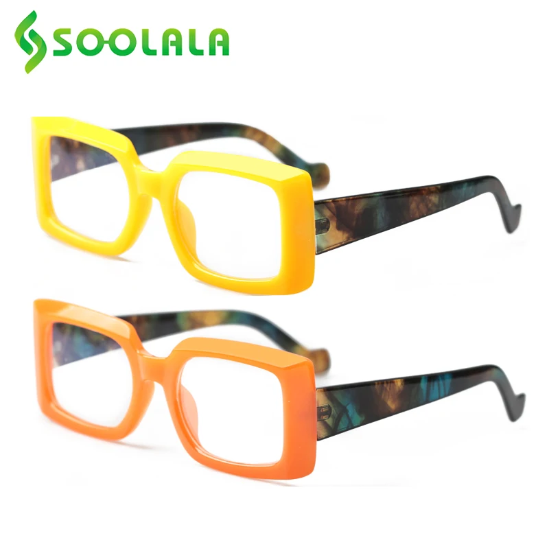 SOOLALA 2 шт яркие квадратные анти-синий светильник очки для чтения женские дальнозоркости читатель очки + 0,5 0,75